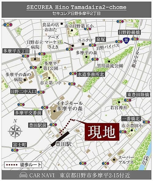 周辺にはイオンモール多摩平の森、コンビニ、飲食店など、日常生活に便利な施設が揃っています