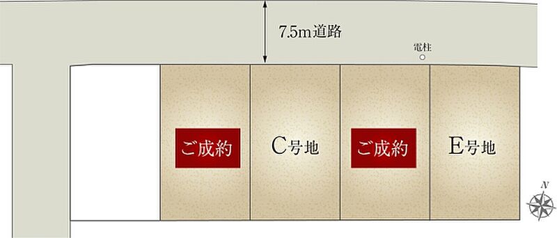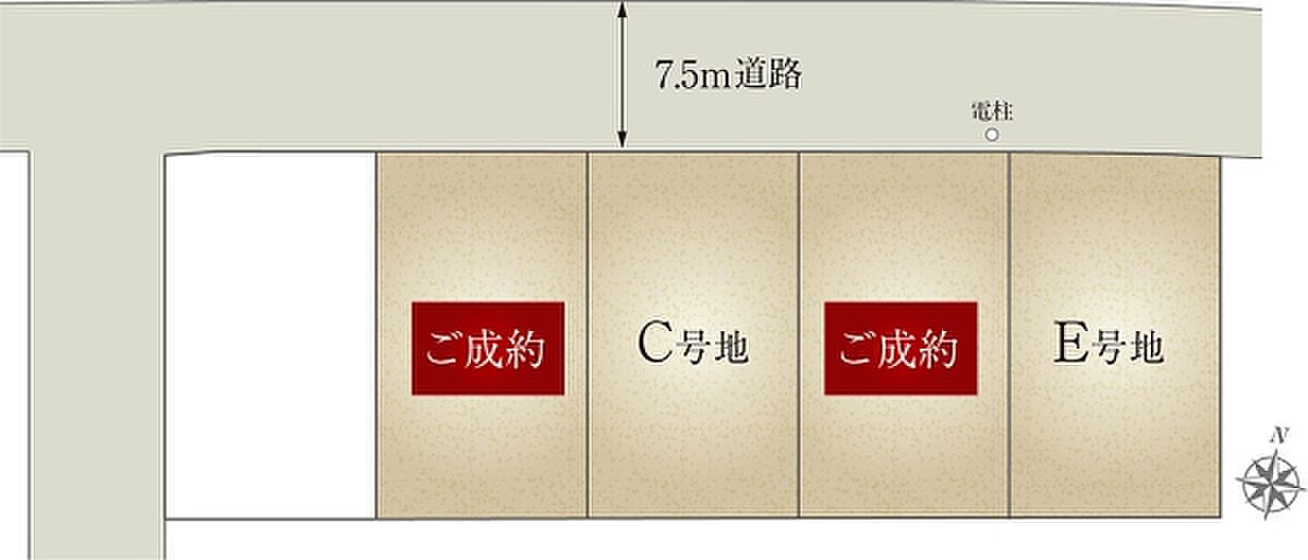| 建物面積 | 101.85m2(C号地)、101.85m2(E号地) | 土地面積 | 186.95m2(C号地)、186.40m2(E号地) 全て私道負担なし |