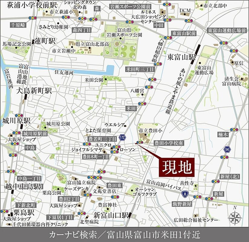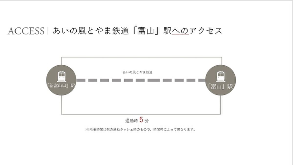 あいの風とやま鉄道「新富山口」駅 徒歩19分~20分 富山地鉄富山港線「城川原」駅 徒歩22分~23分 |