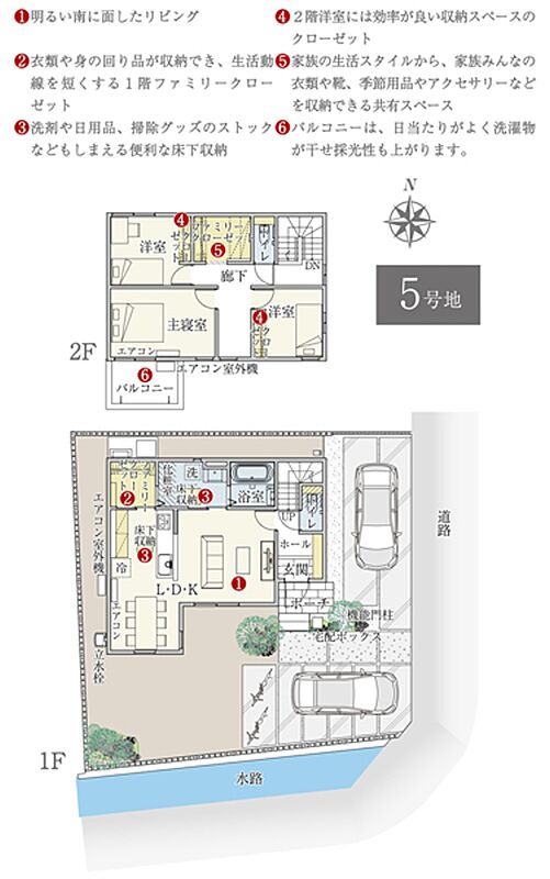 | 建物面積 | 92.73m2(5号地) | 土地面積 | 155.87m2(5号地) 私道負担なし |