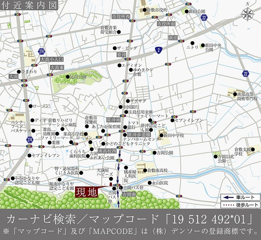 - ※物件から周辺のお店・施設までの距離は、利用が想定される道路を通行した場合の距離です。なお、必ずしも最短距離を保証するものではありません。