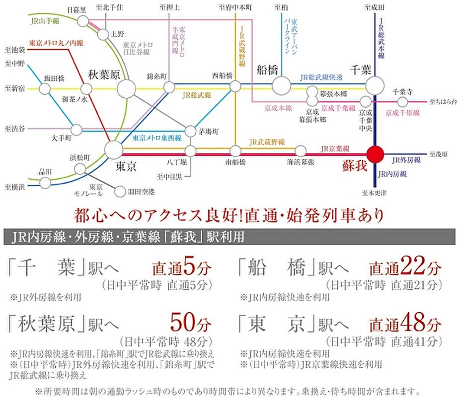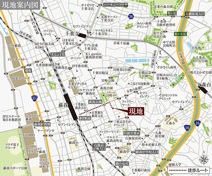 JR外房線「蘇我」駅 徒歩9分 京成千原線「千葉寺」駅 徒歩16分 JR総武本線「千葉」駅 徒歩56分 |