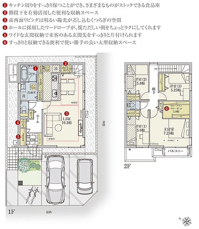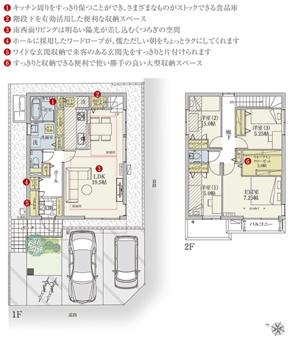 | 駐車場 | 2台 | 道路の幅員 | 4.0m、6.0m(アスファルト舗装) |