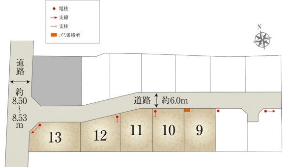 - 183.17m2 私道負担あり 604m2のうち、13分の1の負担持分(9号地)、181.77m2 私道負担あり 604m2のうち、13分の1の負担持分(10号地)、181.57m2 私道負担あり 604m2のうち、13分の1の負担持分(11号地)、181.50m2 私道負担あり 604m2のうち、13分の1の負担持分(12号地)、197.22m2 私道負担あり 604m2のうち、13分の1の負担持分(13号地)
