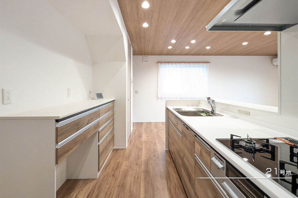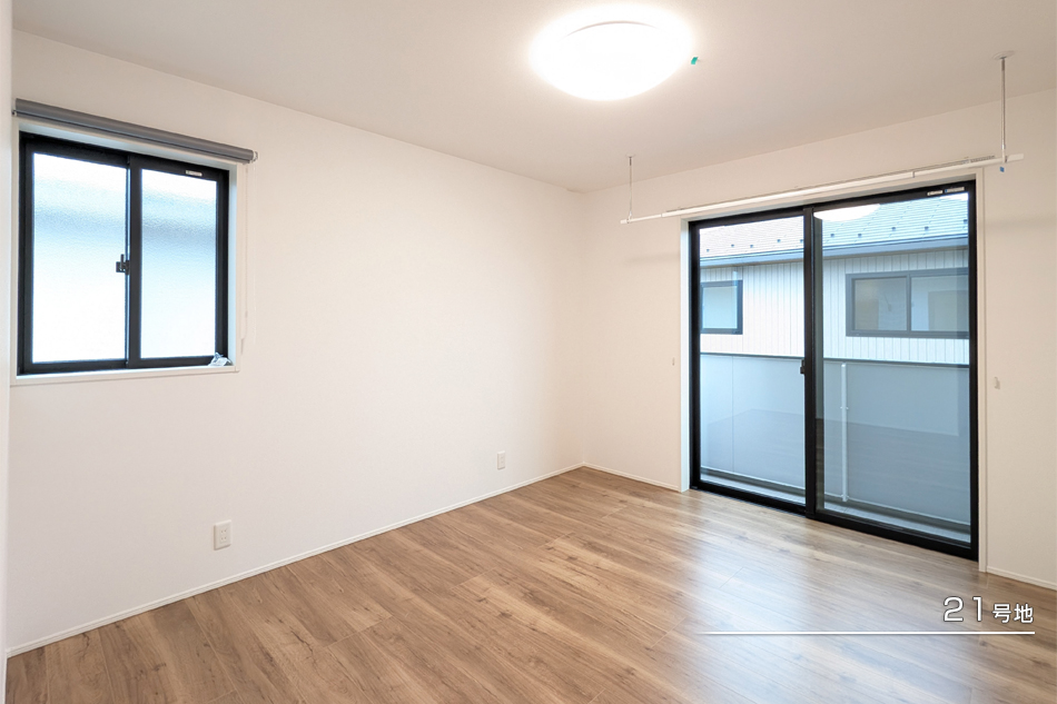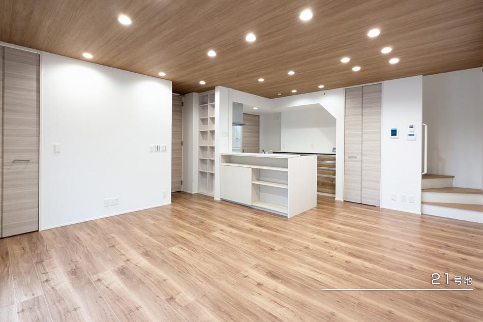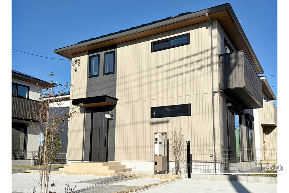| 建物面積 | 111.30m2(19号地)、108.81m2(20号地)、103.02m2(21号地) | 土地面積 | 169.68m2(19号地)、150.46m2(20号地)、150.45m2(21号地) 私道負担なし |