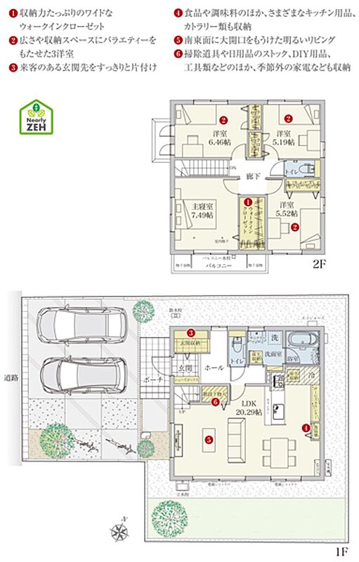 | 建物面積 | 111.30m2(19号地)、108.81m2(20号地) | 土地面積 | 169.68m2(19号地)、150.46m2(20号地) 全て私道負担なし |