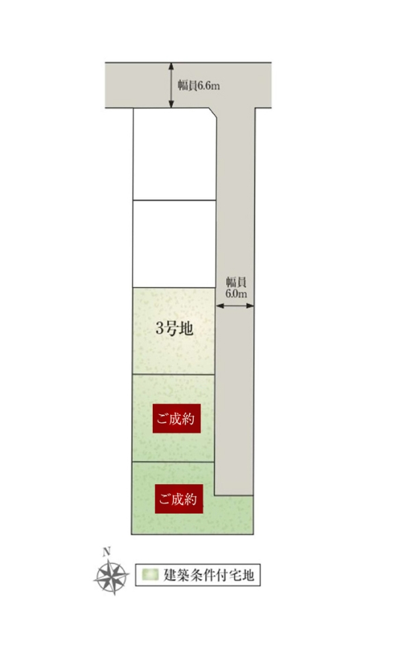 | 建物面積 | 107.64m2(3号地) | 土地面積 | 165.59m2(3号地) 私道負担なし |