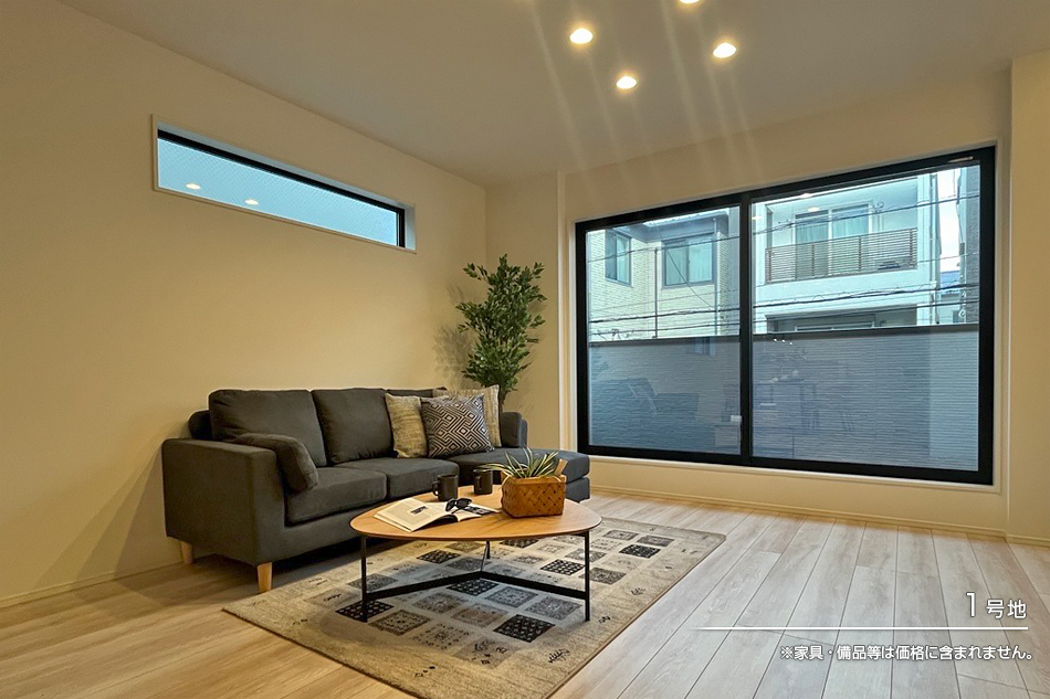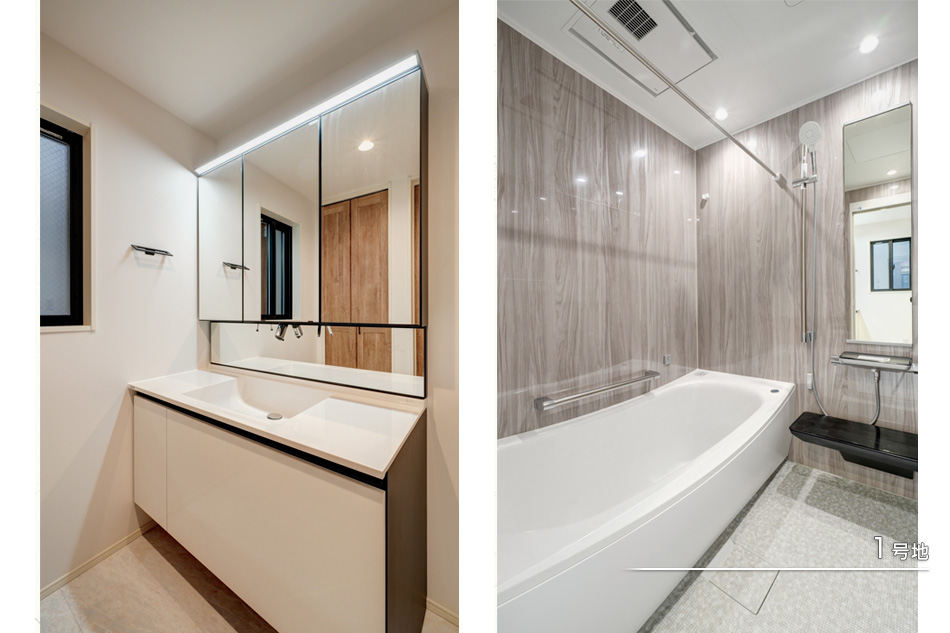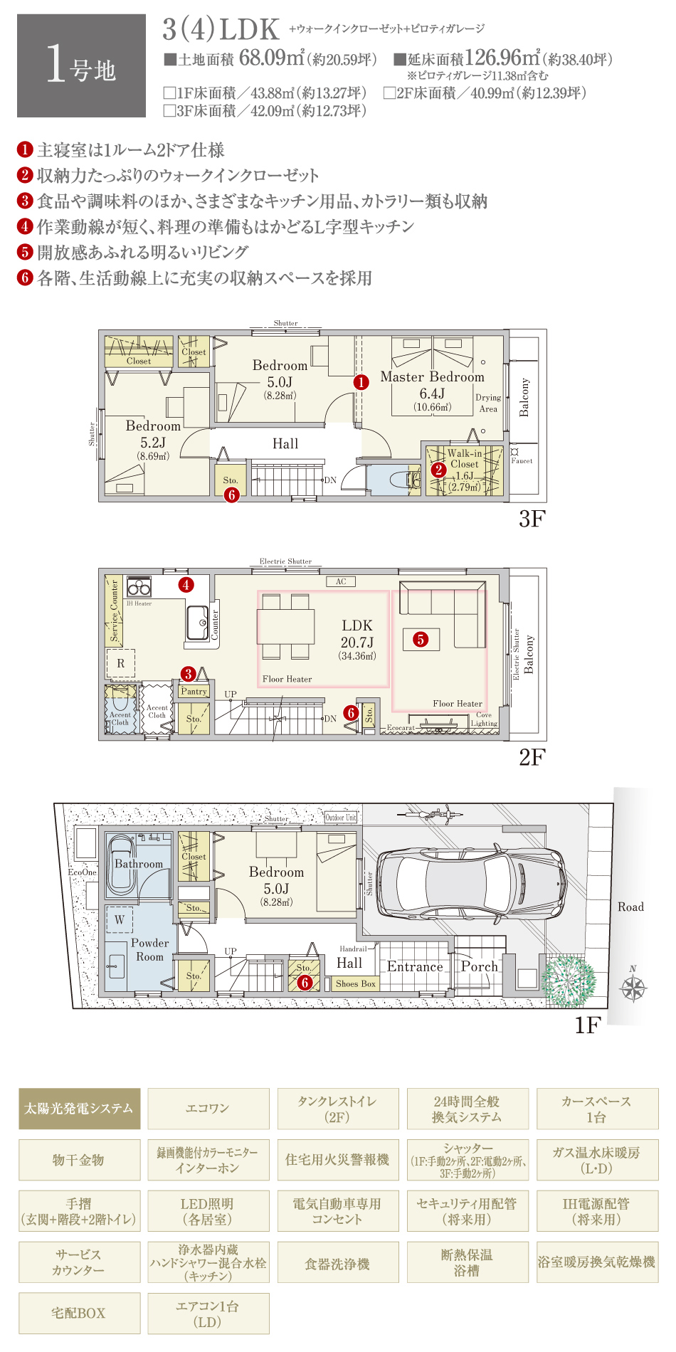 | 備考 | 1号地延床面積126.96m2にはピロティガレージ11.38m2が含まれます。 | ||