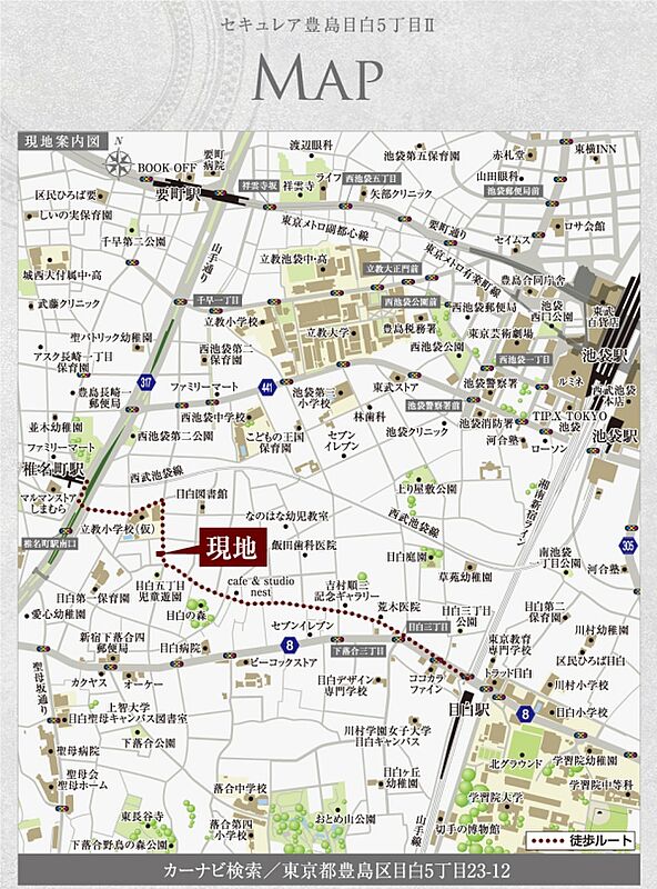 西武池袋線「椎名町」駅 徒歩5分 JR山手線「目白」駅 徒歩13分 東武東上線「池袋」駅 徒歩18分 |