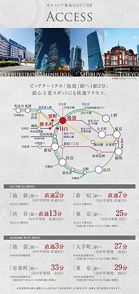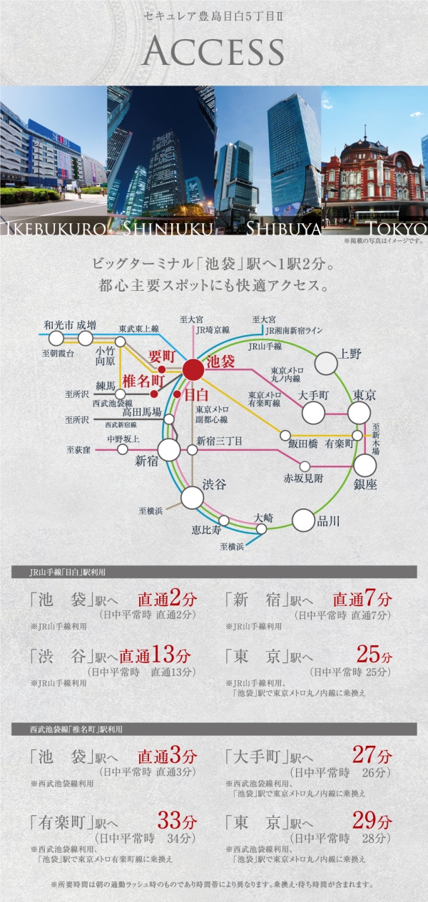 4駅5路線利用可能・池袋駅まで直通2分の立地(JR山手線「目白」駅利用。日中常時直通2分)