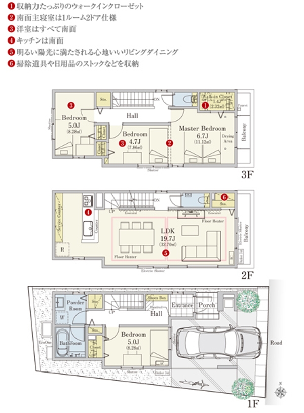 - ※完成予想図やCG合成画像は、門塀・植栽・庭・外観等、実際とは多少異なる場合があります。