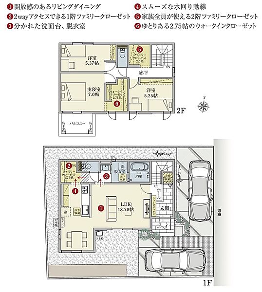 | 建物面積 | 102.67m2(1号地) | 土地面積 | 142.17m2(1号地) 私道負担なし |