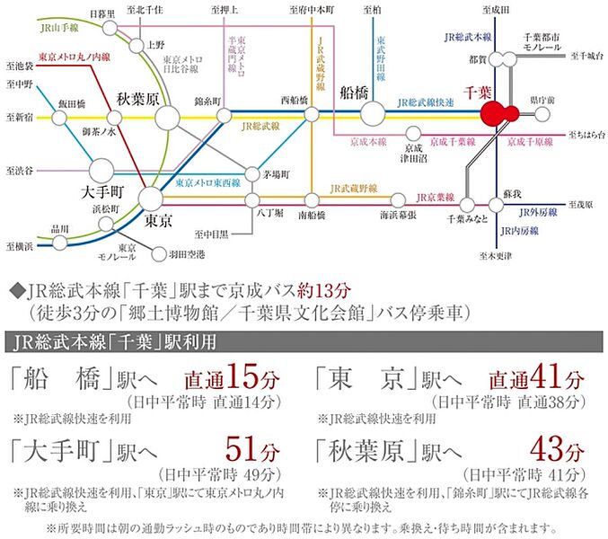 JR総武本線「千葉」駅まで京成バス約13分(徒歩3分の「郷土博物館/千葉県文化会館」バス停乗車)