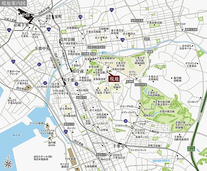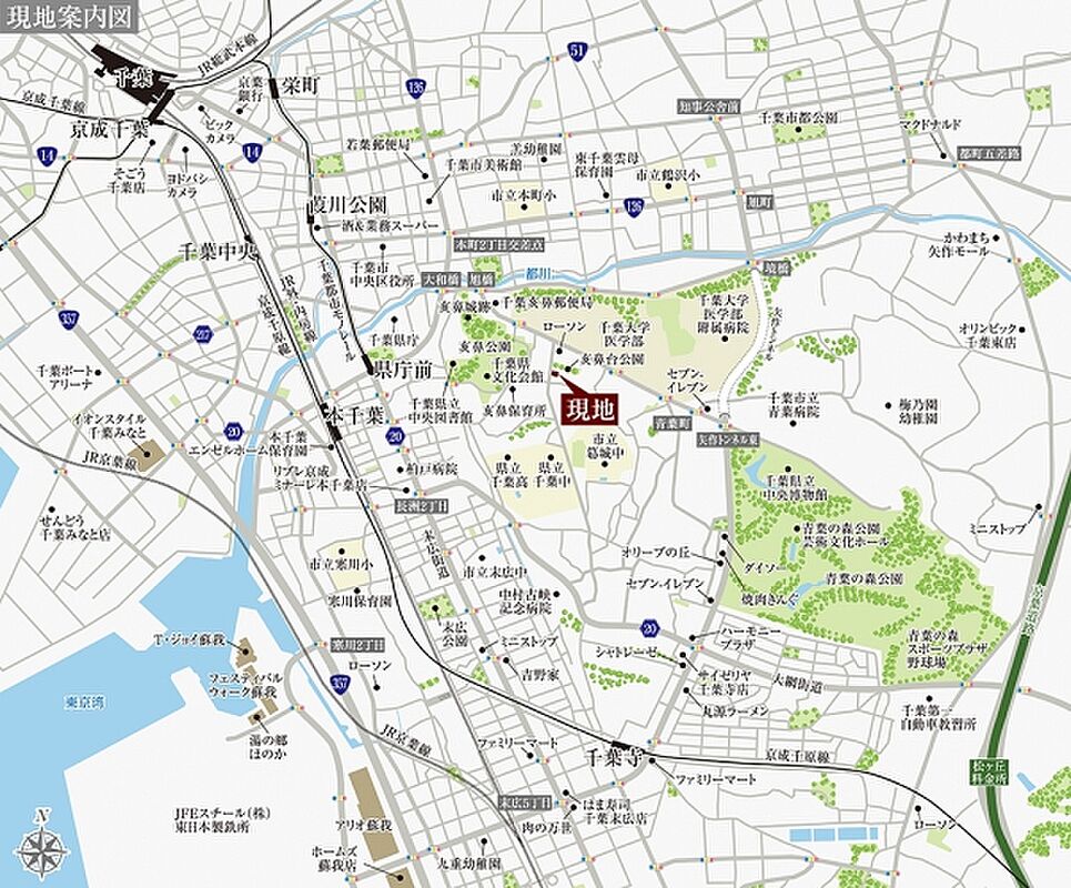 千葉都市モノレール「県庁前」駅 徒歩11分~11分 JR外房線「本千葉」駅 徒歩12分 JR総武本線「千葉」駅 徒歩27分 |