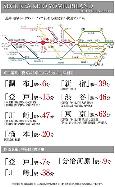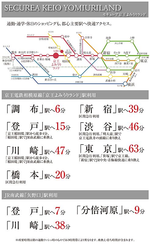 京王電鉄相模原線「京王よみうりランド」駅、JR南武線「矢野口」駅の2駅2路線利用可能!