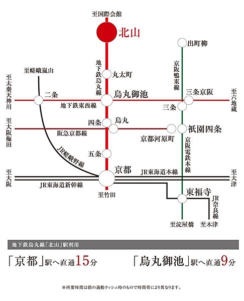 京都市営地下鉄烏丸線「北山」駅まで徒歩6分。