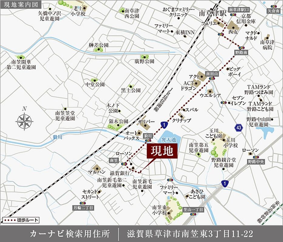 JR東海道・山陽本線「南草津」駅 徒歩22分 |