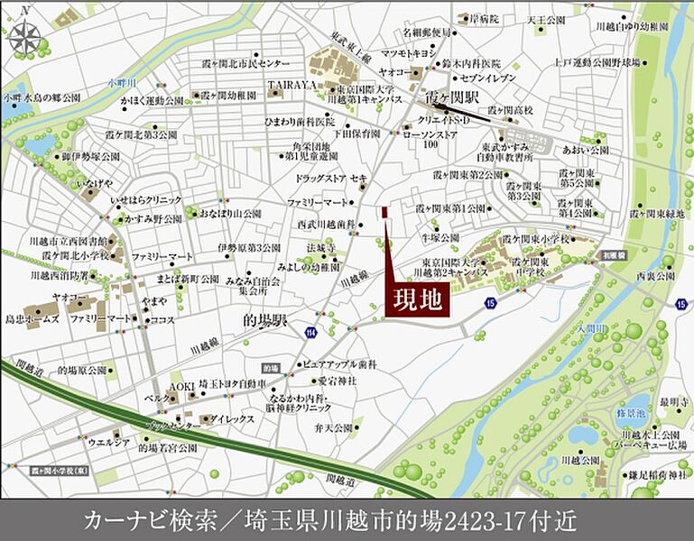 東武東上線「霞ヶ関」駅 徒歩8分~9分 JR川越線「的場」駅 徒歩10分~10分 東武東上線「川越」駅 徒歩60分~61分 |