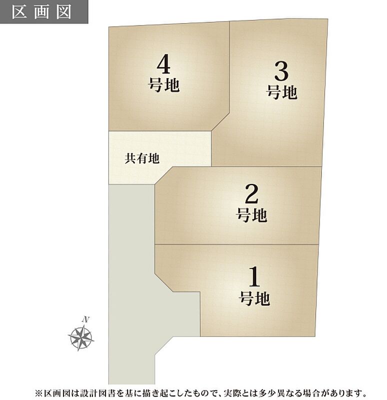 - 161.36m2 私道負担あり 34.05m2のうち、4分の1の負担持分(1号地)、166.05m2 私道負担あり 34.05m2のうち、4分の1の負担持分(2号地)、212.65m2 私道負担あり 34.05m2のうち、4分の1の負担持分(3号地)、194.15m2 私道負担あり 34.05m2のうち、4分の1の負担持分(4号地)