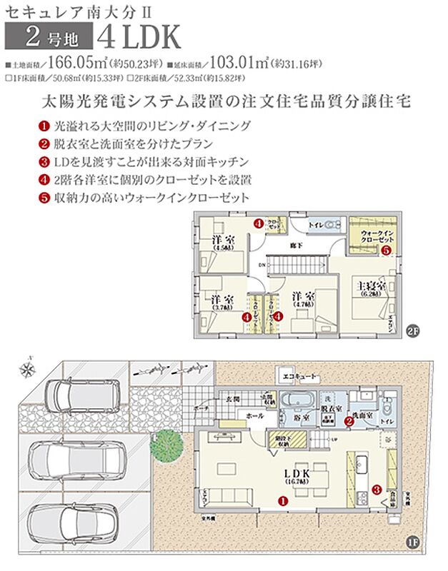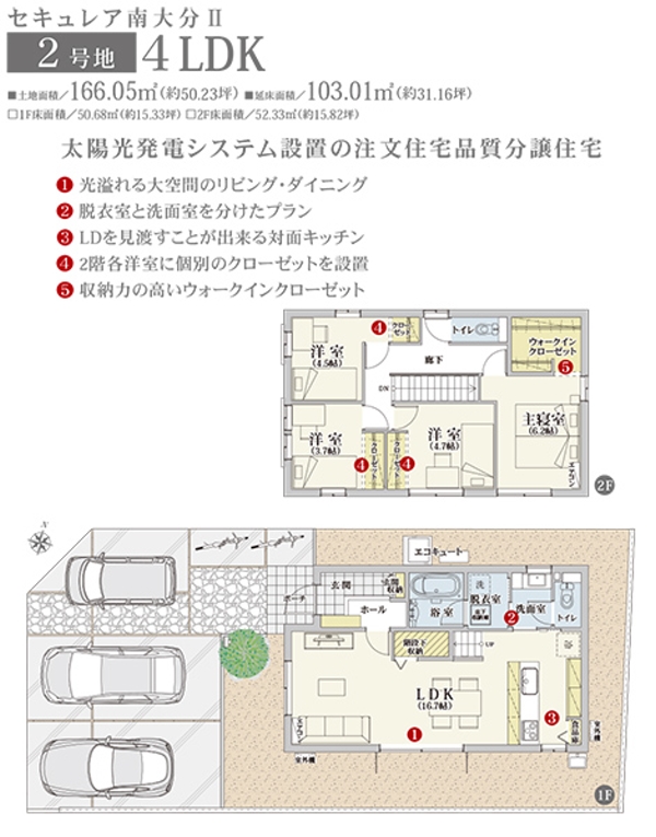 - 3LDK(3号地)、4LDK(1号地、2号地、4号地)
