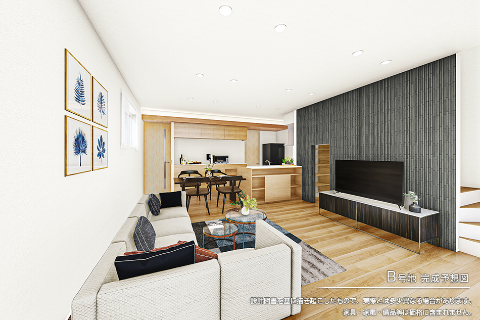 - ※完成予想図やCG合成画像は、門塀・植栽・庭・外観等、実際とは多少異なる場合があります。