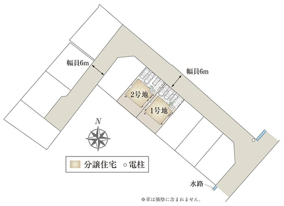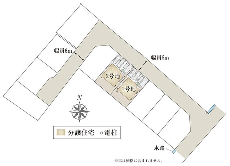 | 間取り | 3LDK(2号地)、4LDK(1号地) | 建物構造 | 木造2階建(2戸) |