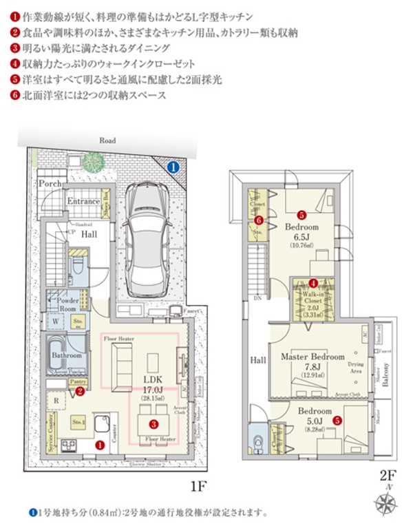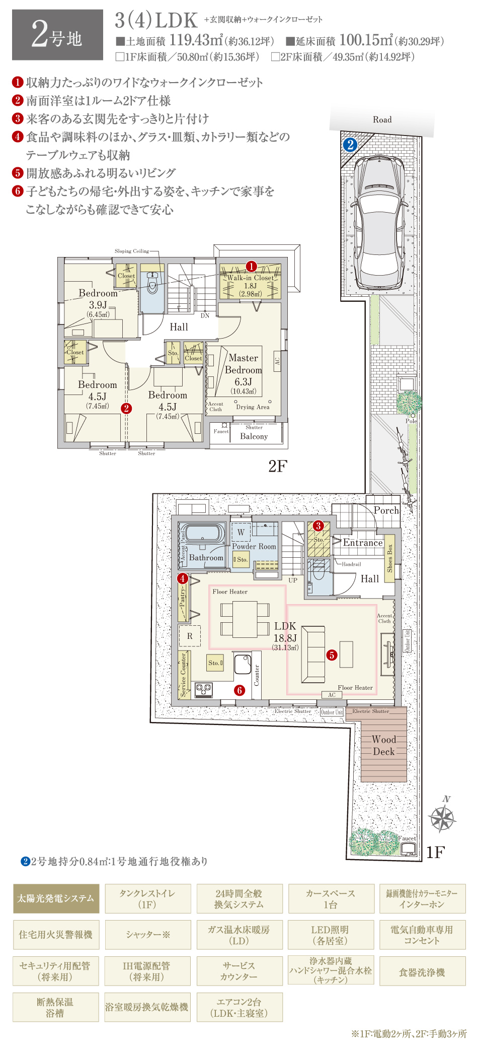 | 備考 | ■1号地の延床面積108.19m2には駐車スペース9.07m2含む | ||