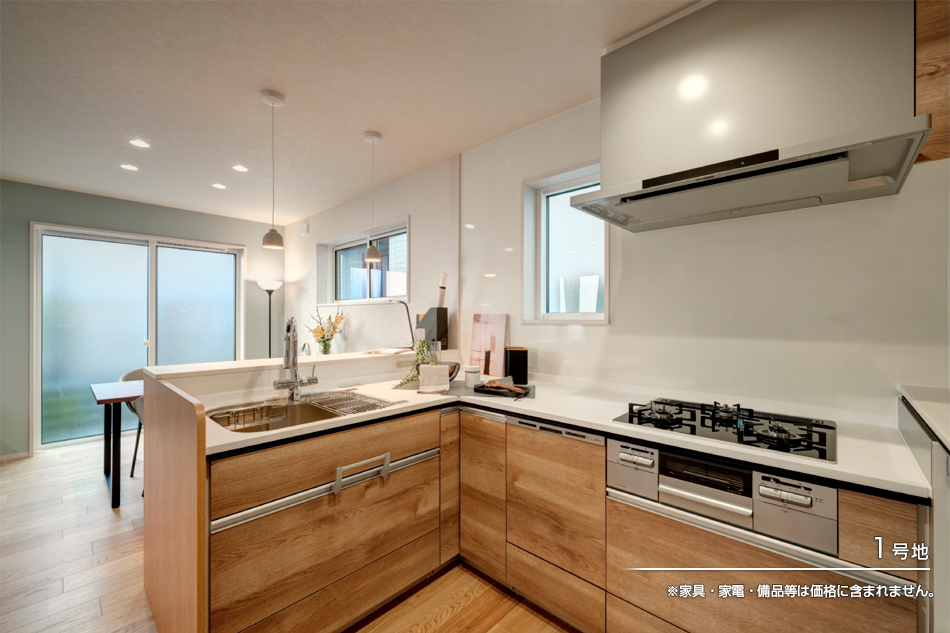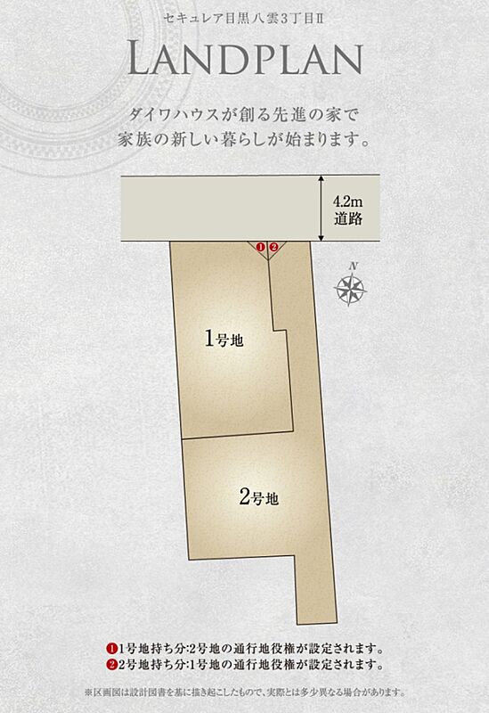 | 建物面積 | 108.19m2(1号地)、100.15m2(2号地) | 土地面積 | 90.00m2(1号地)、119.43m2(2号地) 全て私道負担なし |