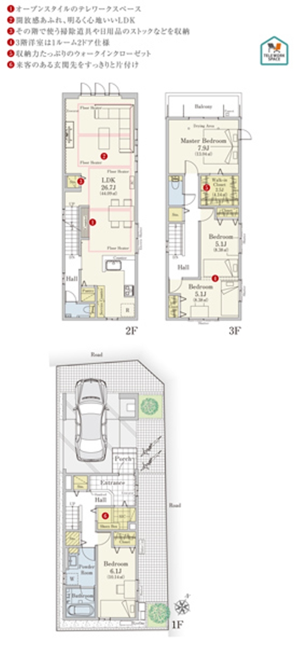 - ※完成予想図やCG合成画像は、門塀・植栽・庭・外観等、実際とは多少異なる場合があります。