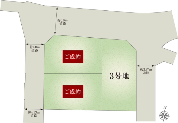 | 駐車場 | 2台 | 道路の幅員 | 約3.97m、約4.0m~約4.13m、約6.0m(アスファルト舗装) |