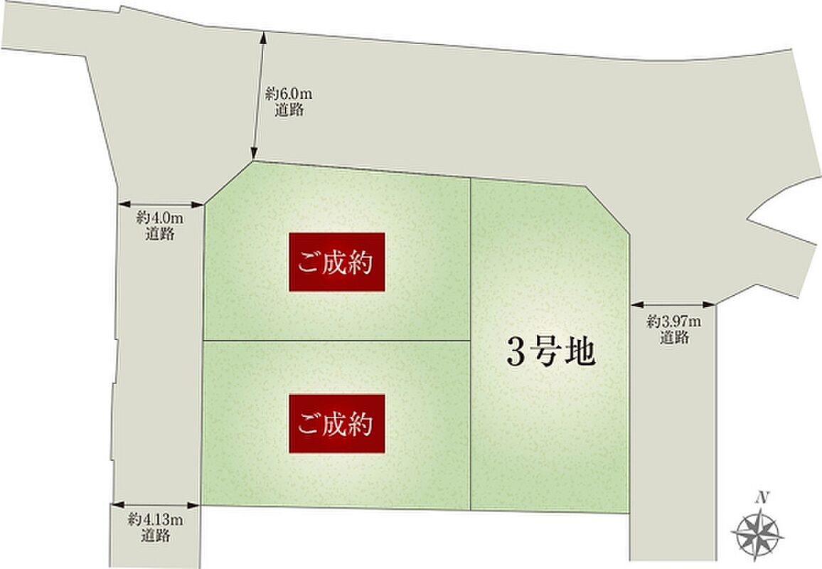 | 建物面積 | 100.53m2(3号地) | 土地面積 | 108.11m2(3号地) 私道負担なし |