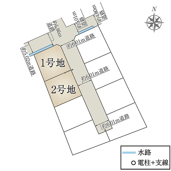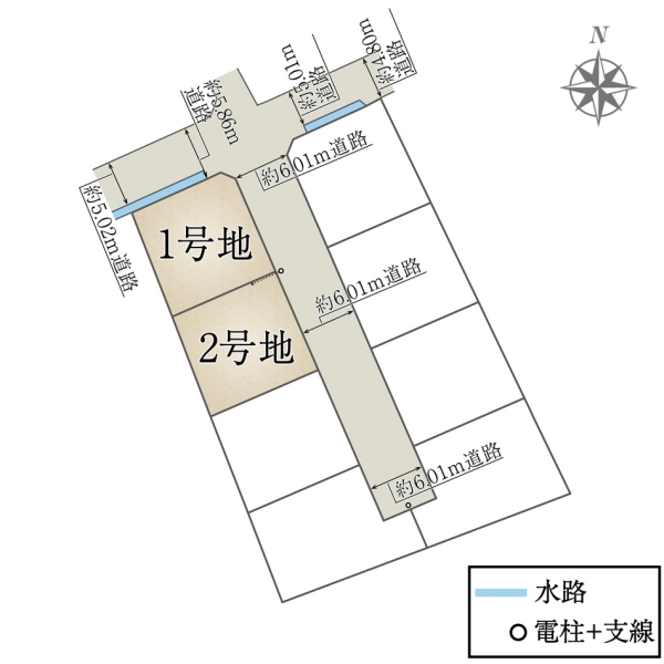 | 駐車場 | 2台 | 道路の幅員 | 約5.86m~約6.01m(アスファルト舗装) |