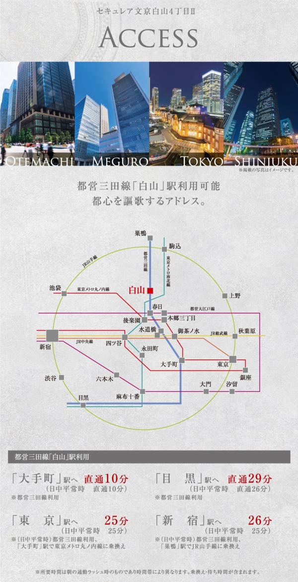 都営三田線「白山」駅 徒歩8分 東京メトロ南北線「本駒込」駅 徒歩14分 |