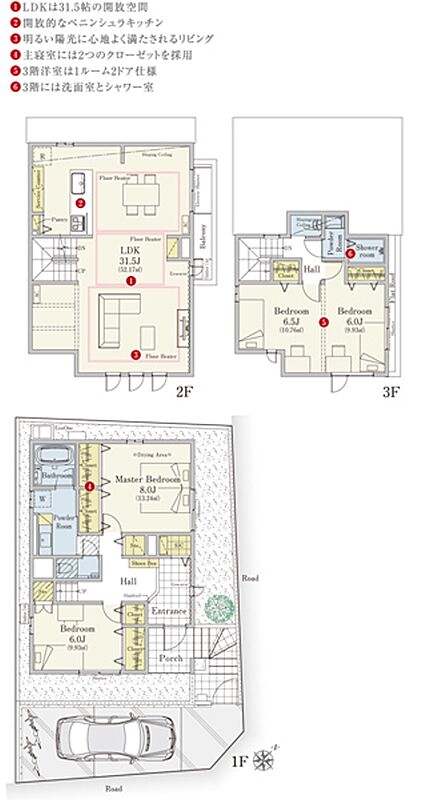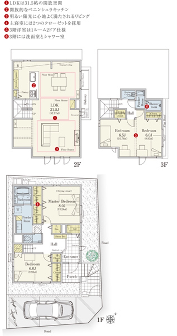 | 間取り | 3LDK(1号地) | 建物構造 | 木造3階建(1戸) |