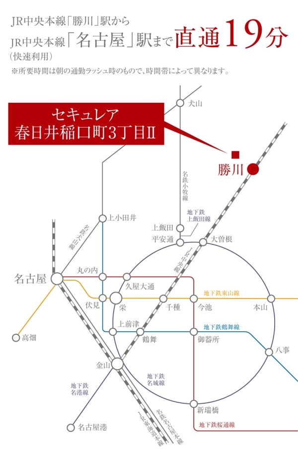 JR中央本線「勝川」駅から快速利用で「名古屋」駅まで通勤時直通19分