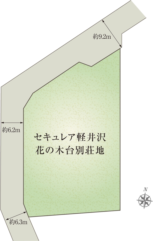 | 駐車場 | 2台 | 道路の幅員 | 6.2m~6.3m、9.2m(アスファルト舗装) |