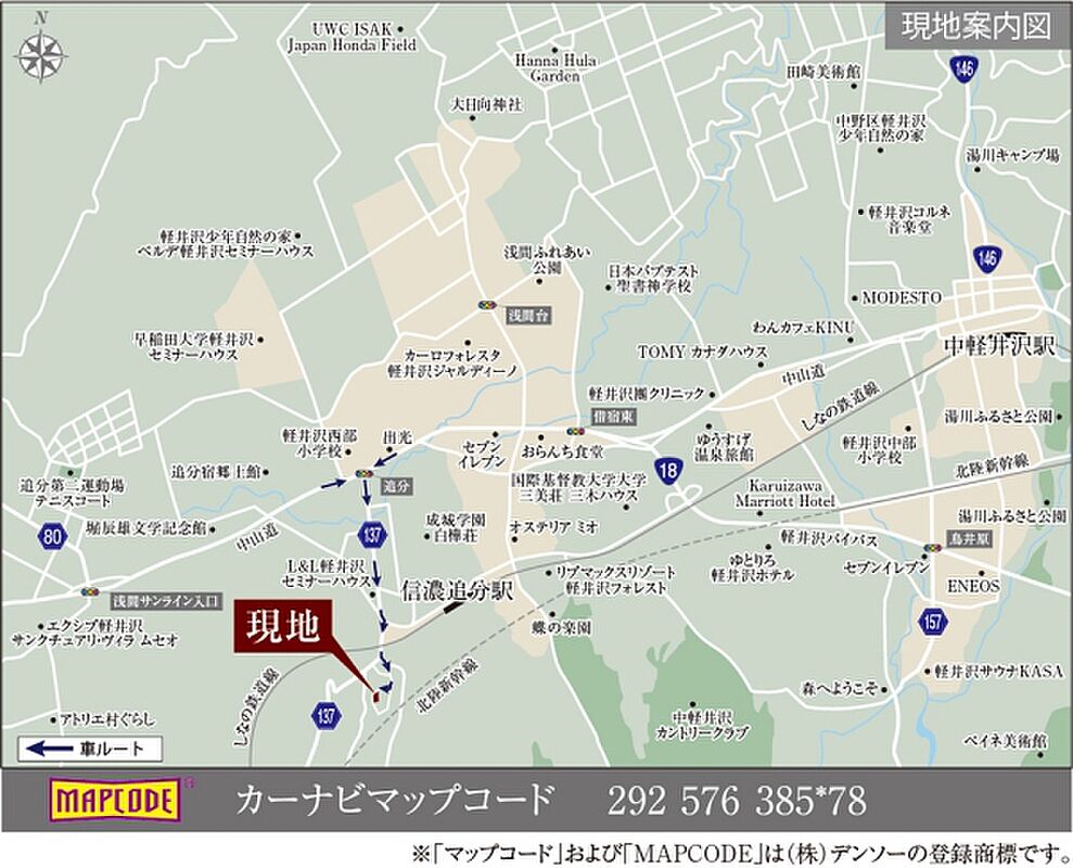 しなの鉄道「信濃追分」駅 徒歩13分 JR北陸新幹線「軽井沢」駅 徒歩112分 |
