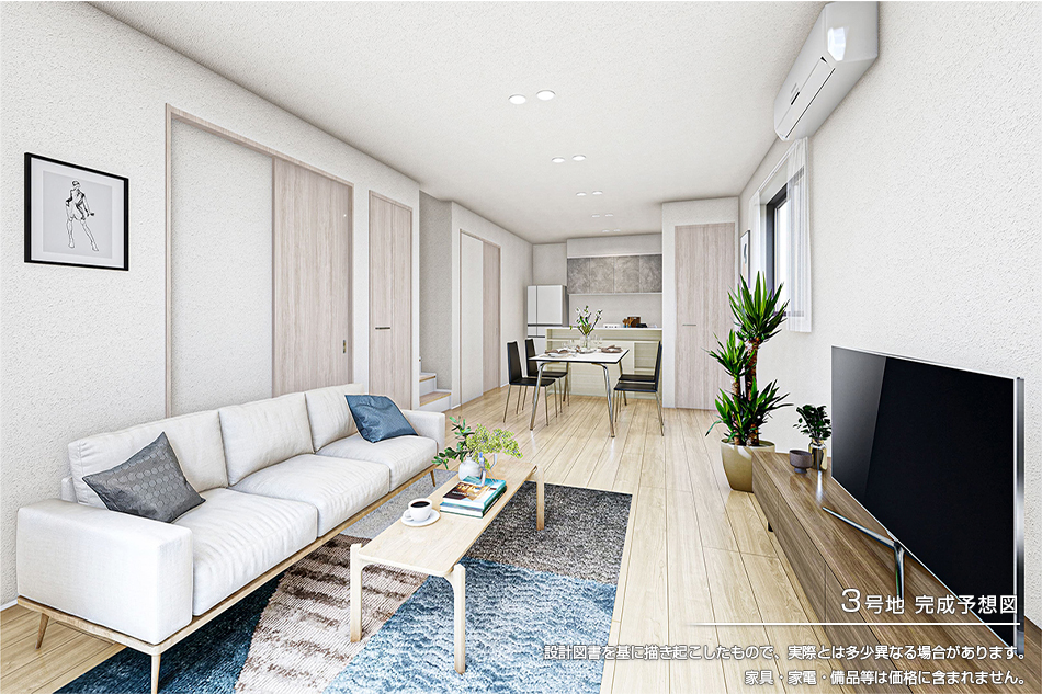- ※完成予想図やCG合成画像は、門塀・植栽・庭・外観等、実際とは多少異なる場合があります。