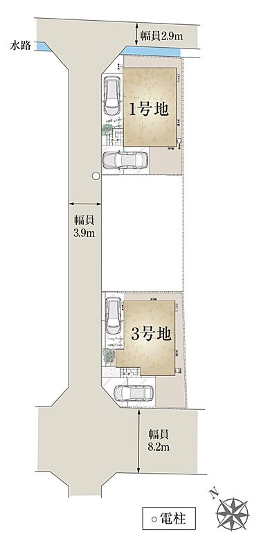 | 間取り | 3LDK(1号地)、4LDK(3号地) | 建物構造 | 軽量鉄骨2階建(2戸) |