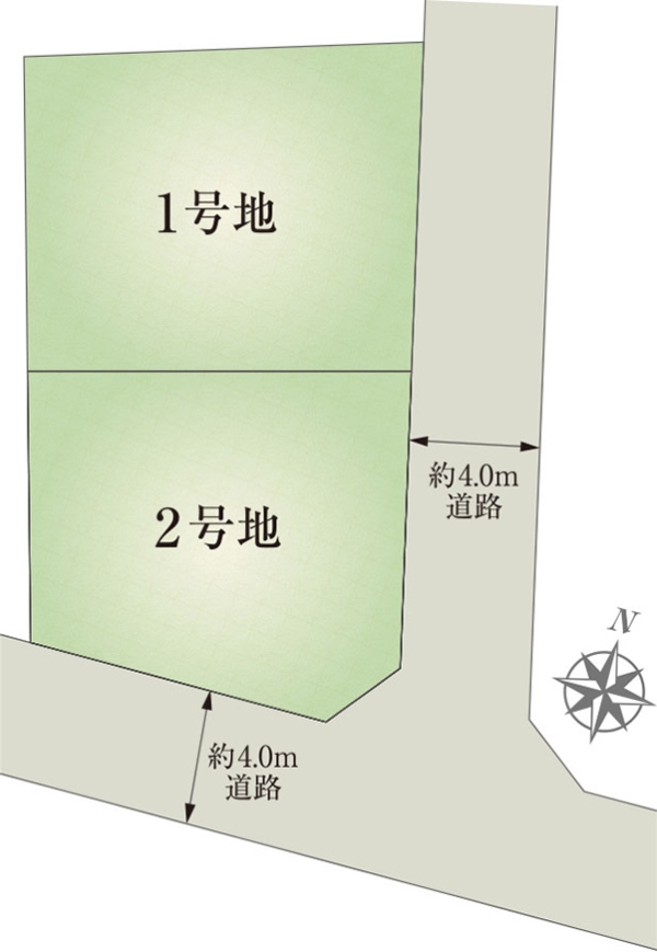 | 間取り | 4LDK(1号地、2号地) | 建物構造 | 軽量鉄骨2階建(2戸) |