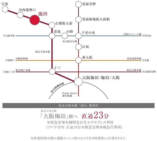 阪急電鉄宝塚線「池田」駅をはじめ、徒歩圏内に利便施設が充実。