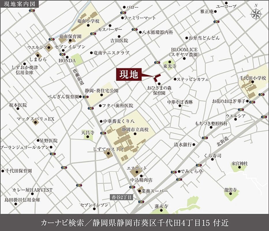 - ※地図上に表示される各種アイコンなどの情報は、おおよその所在地を表すものであり、物件・施設などの地点を保証するものではありません。