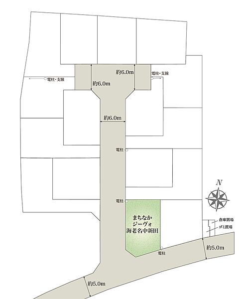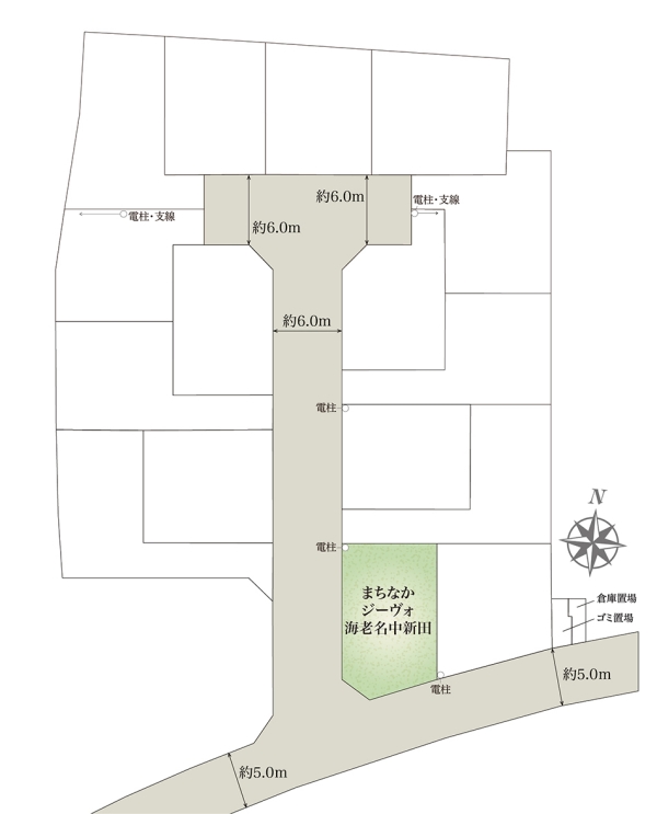| 駐車場 | 1台 | 道路の幅員 | 5.0m、6.0m(アスファルト舗装) |