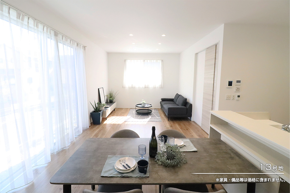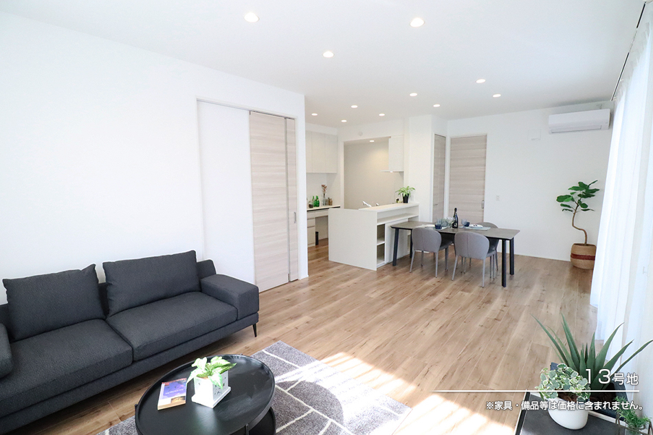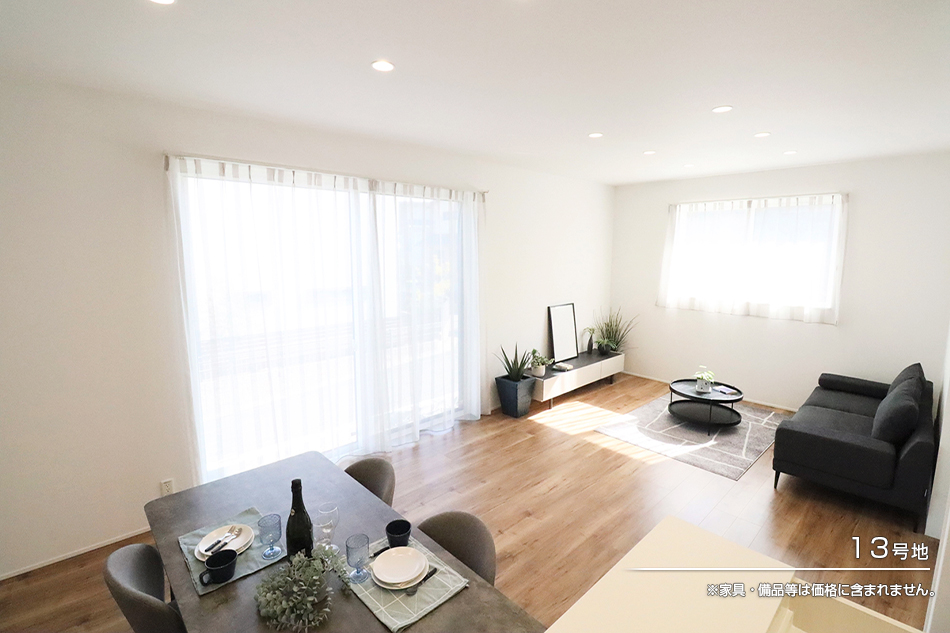 | 間取り | 4LDK(12号地、13号地) | 建物構造 | 軽量鉄骨2階建(2戸) |