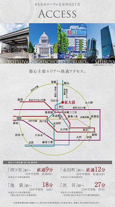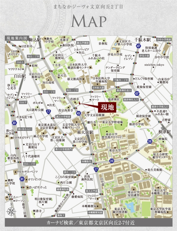 東京メトロ南北線「東大前」駅 徒歩3分 東京メトロ南北線「本駒込」駅 徒歩8分 都営三田線「白山」駅 徒歩11分~84分 |