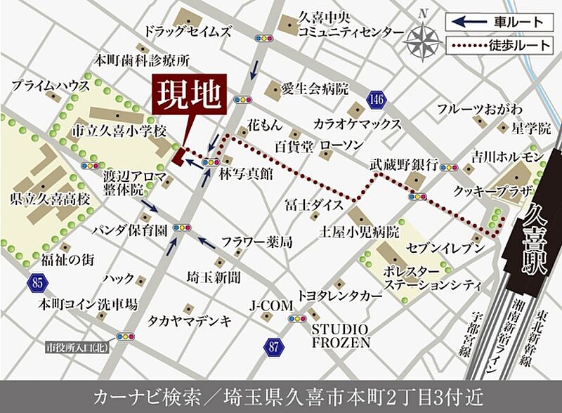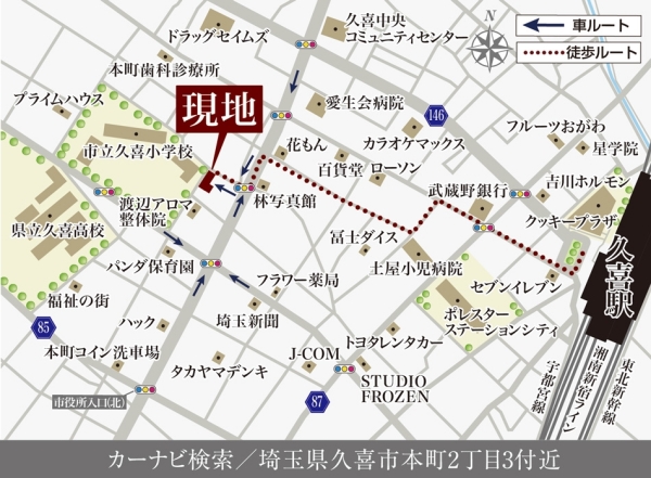 湘南新宿ライン宇須「久喜」駅 徒歩9分~9分 東武伊勢崎線「久喜」駅 徒歩9分~9分 |