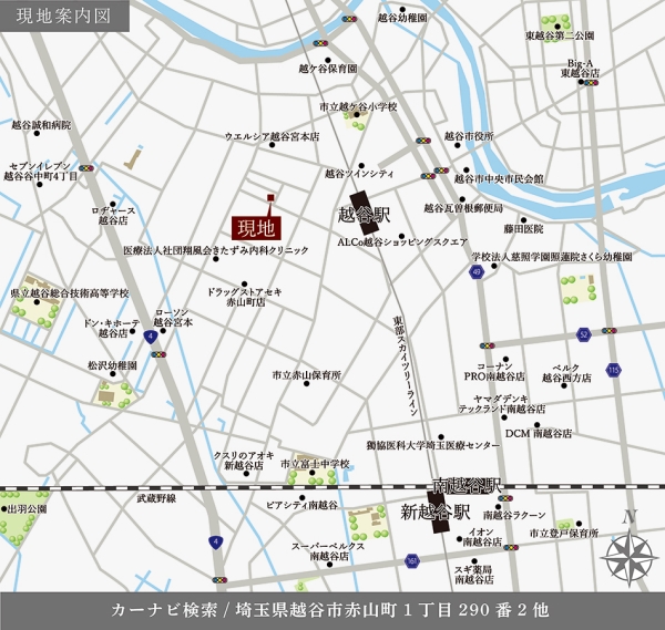 東武伊勢崎線「越谷」駅 徒歩7分 JR武蔵野線「南越谷」駅 徒歩23分 |