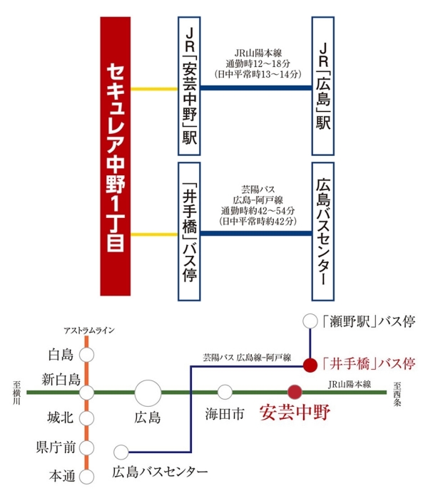 JR山陽本線「安芸中野」駅まで徒歩13分