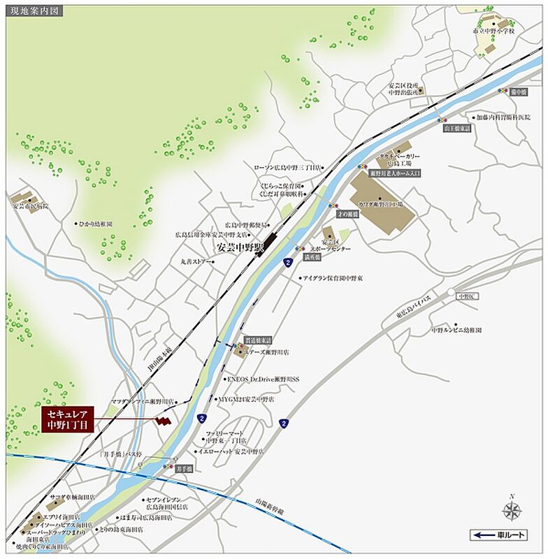 JR山陽本線「安芸中野」駅 徒歩13分 |
