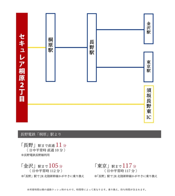 長野電鉄長野線「桐原」駅まで徒歩5分とJR北陸新幹線「長野」駅までのアクセスも良好